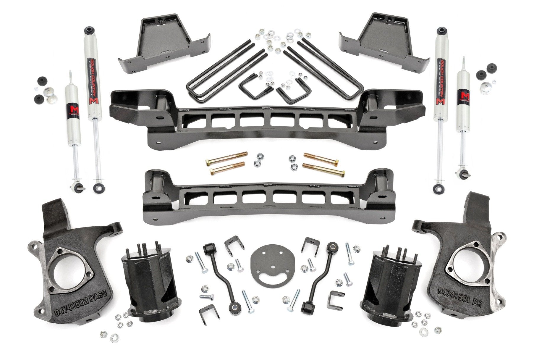 Easy Bolt-On Installation: Enjoy a hassle-free installation process with no welding or cutting required, ensuring a smooth upgrade to your vehicle. Maintains Factory Ride Quality: Experience enhanced ride comfort while preserving the original factory handling, providing a perfect blend of performance and ease. High Clearance Crossmember Design: The innovative crossmember design offers increased ground clearance, improving off-road capabilities without compromising stability. Levels the Front with the Rear of the Vehicle: Achieve a more aggressive, balanced stance with improved vehicle posture, leveling out the front to match the rear for a uniform look. Fabricated Blocks for Enhanced Strength: Crafted from high-strength materials, the fabricated blocks provide superior durability and a longer lifespan compared to traditional cast blocks. Anti-Axle Wrap Rear Blocks: Specially designed to eliminate common lift block problems, these rear blocks maintain stock ride quality while preventing axle wrap for a smoother, more controlled drive. Configurable Shock Options: Choose from our nitrogen-charged N3, V2 Monotube, or M1 Monotube shocks the power to customize your ride is in your hands!