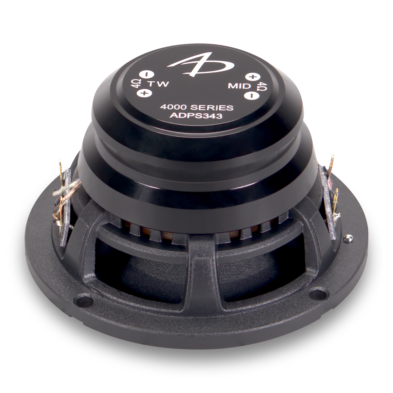 3" Point-source power ratings are figured using an electronic high pass crossover with a minimum crossover point of 400 Hz at 24 dB/Octave, 500 Hz at 18 dB/Octave, or 600 Hz at 12 dB/Octave. Use the included passive crossover for the point-source tweeter in both passive and active crossover configurations.