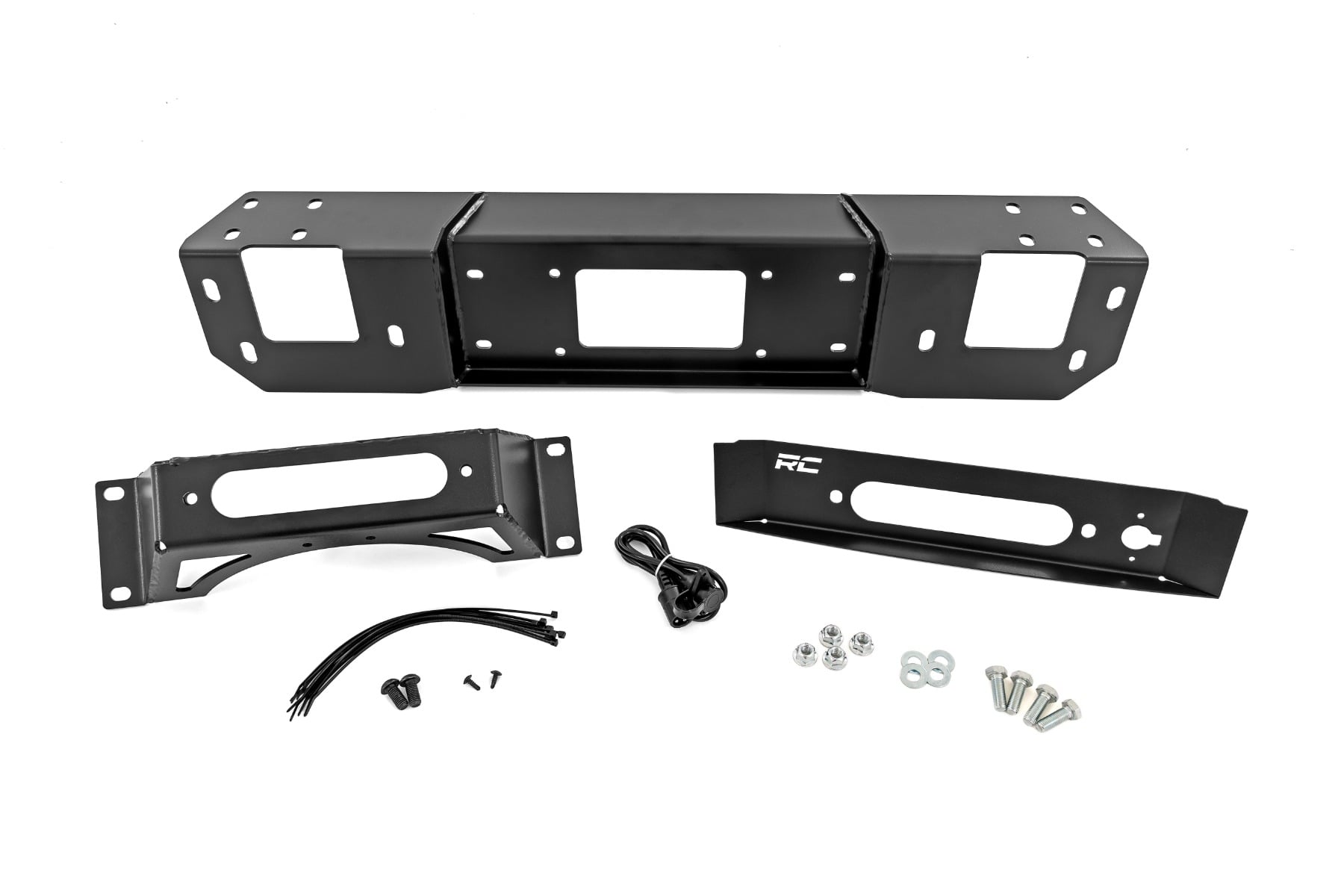 Hidden Strength, Factory-Fit Appearance: Upgrade your Ford F-150 with Rough Country's Hidden Winch Mount Kit, combining rugged durability, stealthy design, and clean, factory-style integration. Perfect for off-road recovery without compromising your truck's sleek look. Stealthy Winch Integration: Engineered for Rough Country's PRO9500S and PRO12000S winches, this mount hides your winch behind the factory bumper cover, maintaining a low-profile, streamlined appearance while delivering serious recovery capability. Convenient Control Access: The included winch control extension harness ensures easy, flexible operation from a convenient location, giving you full control over your winch in any situation. Effortless Installation: Bolt-on structural design simplifies setup, with only minor trimming required for the fairlead and D-ring mounts, letting you hit the trails faster with a secure, factory-style fit. Trail-Ready Strength: Crafted from heavy-duty 7-gauge steel, this mount provides maximum support and durability, combining stealth, strength, and functionality for the ultimate off-road performance on your F-150.