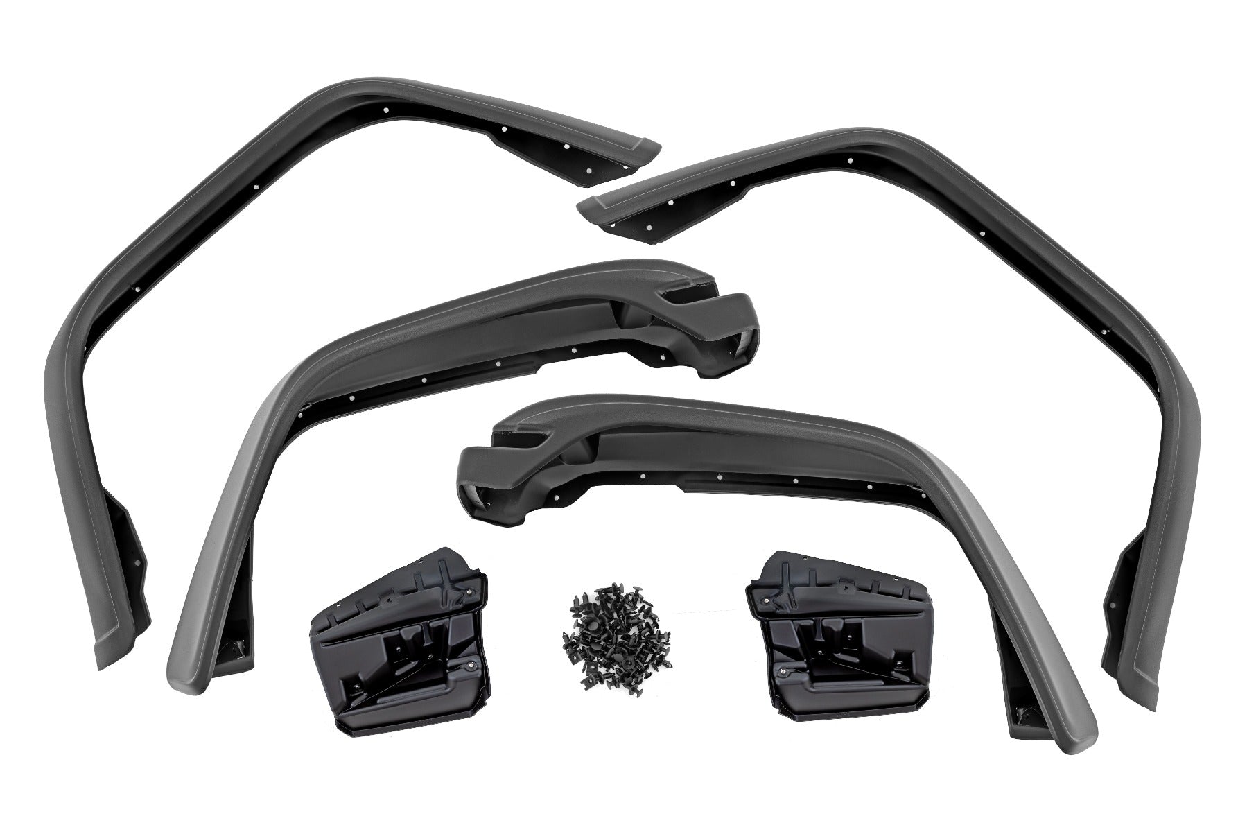 Innovative Design. It's time to stand out from the crowd and rise above your peers. Increase your truck's tire coverage with Rough Country's WF1 Flares for the Jeep Gladiator. These aggressively good-looking flares transform your JT's exterior boasting an additional 3/4" of tire clearance. These uniquely designed flares are sure to protect your JT's body from mud or road debris kicked up by the tires.
