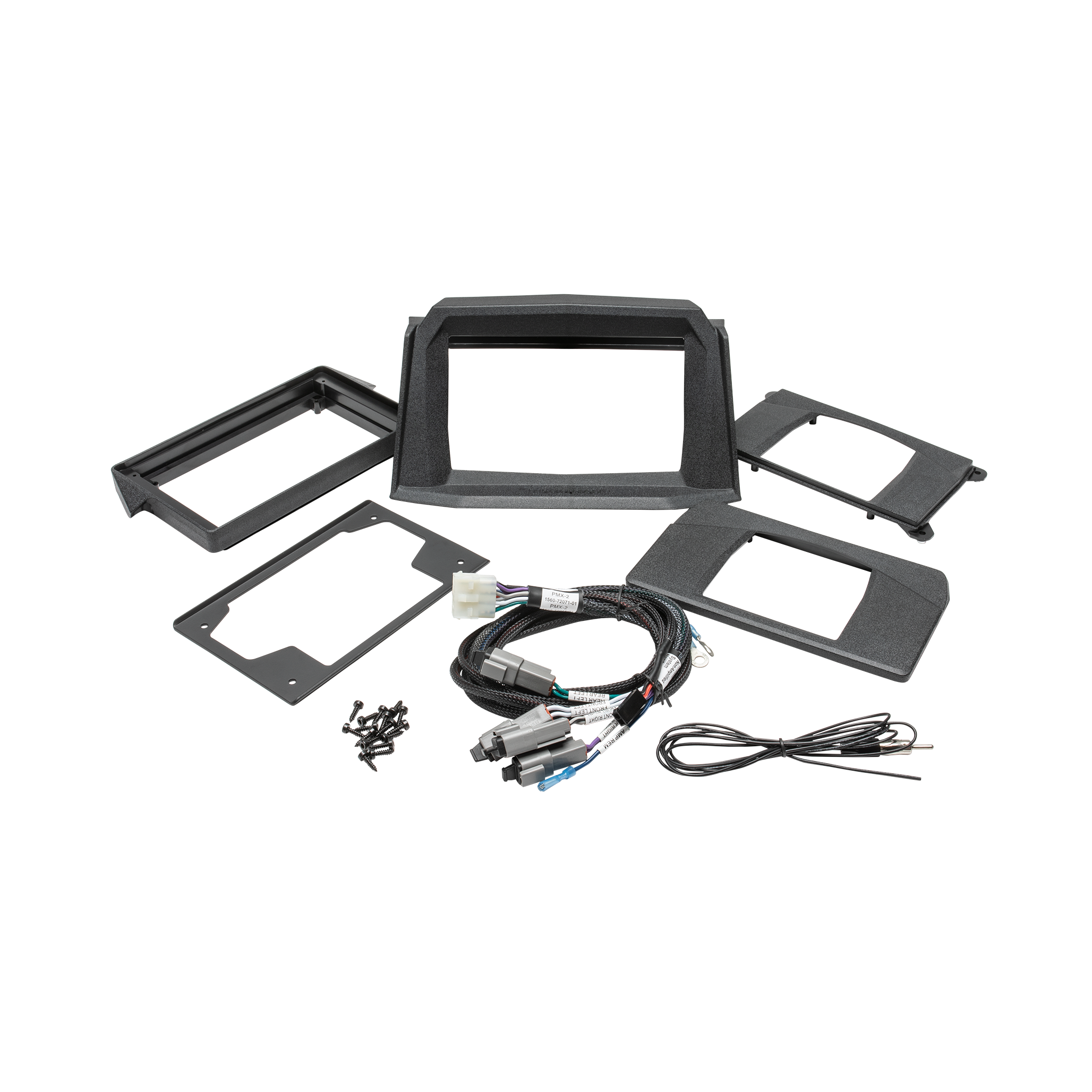 | Included In The Box | (1) upper dash kit (1) upper dash kit PMX insert (8) PMX and insert mounting screws (1) PMX source unit harness for direct connect to Polaris RZR vehicles (1) Lower dash kit for PMX-1/2/3 (1) Lower dash kit for PMX-8DH (1) Lower metal bracket for PMX-1/2/3/8DH mounting |