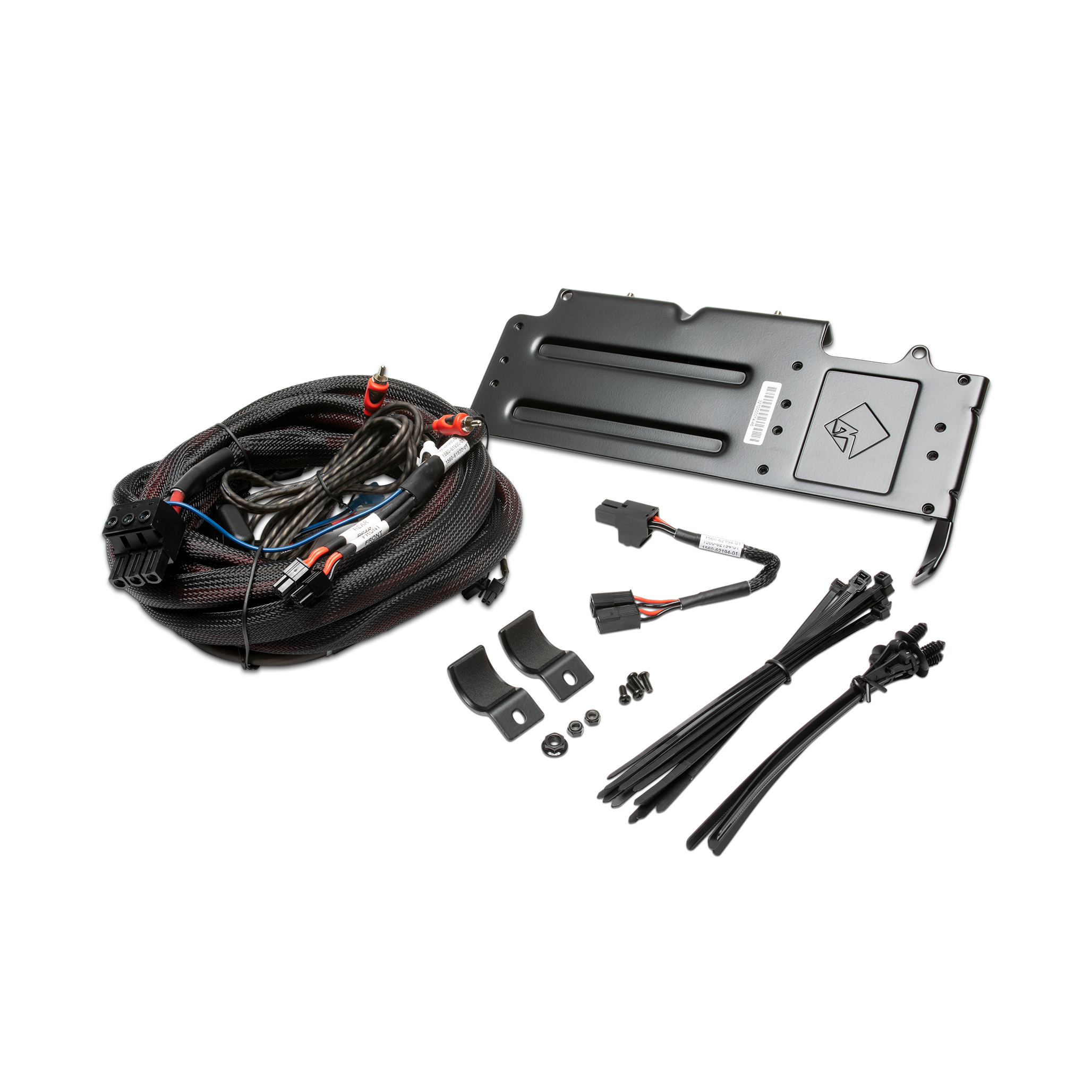 The new 3rd generation single amplifier installation kit features a Color Optix™ Ready wiring harness with 4-gauge power and ground cables with an M5-1500X5 compatible amplifier bracket for select Maverick X3 models. Designed for 2-seat and 4-seat MAX models. Bracket fits underneath dash and attaches to factory steel cage. No cutting or drilling required. Refer to our COMPATIBILITY chart to verify fitment before purchasing. Please contact customer support for replacement parts for your audio kit.